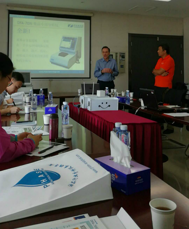 2018年5月11日,深圳華普通用科技有限公司聯合加拿大PHASE公司在深圳計量質量檢測研究院舉行柴油檢測技術交流會,參加會議有深圳計量質量檢測研究院,廣州能源研究院,中石化黃埔油庫,原廣州出入境檢驗檢疫局等用戶單位專家,深圳計量院趙彥所長在會上介紹了柴油檢測技術的新進展。另外,加拿大PHASE公司CEO Chars和中國首席代表齊跡先生介紹了PHASE公司最新柴油傾點,凝點,濁點,粘度,密度五功能分析儀技術。